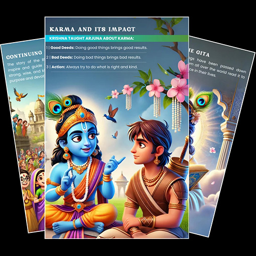 Introduce your child to the profound teachings of the Bhagavad Gita with an engaging, kid-friendly eBook.